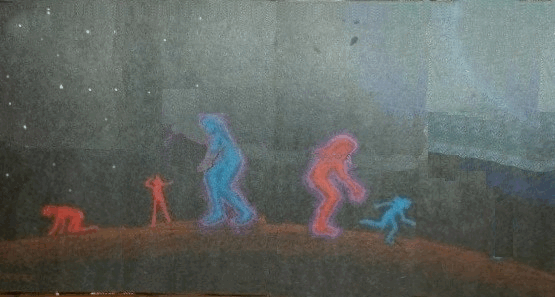 So ChaPuHaup blew life into the people and the bad ChaPuHaup, who was blind, he didn't know what was going on. He's trying to do something bad, and people were running away from him. Immediately after people were formed, they began to change their shapes, which is our version of evolution.
