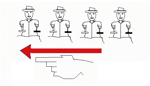 The single finger means that this is a "Medio" shot, with the white peones facing the shot. This is sometimes prefaced by the word "Uno."
